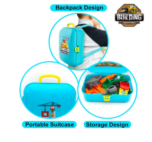 Тепер маленький будівельник і шанувальник машинок може самостійно взяти із собою свою улюблену іграшку! Набір-конструктор із будівельною технікою та краном, викруткою й дрібничками будівельного майданчика після гри акуратно складається в пластикову валізу, яку можна носити як рюкзак.