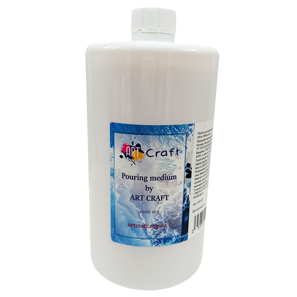 Медіум для рідкого акрилу застосовується для створення фарб в абстрактній художній техніці малювання на полотні Fluid Art, де фарби не змішуються між собою, а створюють картинку з різних кольорів за допомогою такого рідкого акрилу. Також він слугує для уповільнення висихання акрилових фарб. Об'єм 1000 мл.